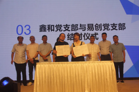 待致辭結(jié)束后,易創(chuàng)黨支部和鑫和商會(huì)黨支部、建行黨支部在到場(chǎng)領(lǐng)導(dǎo)和嘉賓的見(jiàn)證下舉行了結(jié)對(duì)簽約儀式,現(xiàn)場(chǎng)氛圍熱烈隆重。隨后,與會(huì)黨員還和在場(chǎng)嘉賓一起進(jìn)行了張富清同志事跡學(xué)習(xí),學(xué)習(xí)革命老兵發(fā)揮吃苦耐勞的傳統(tǒng)精神。